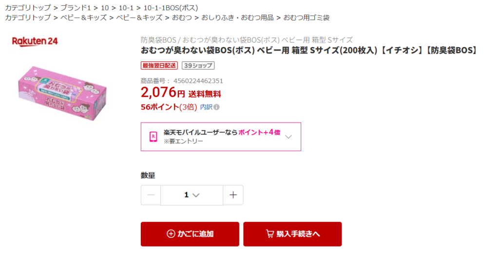 アマゾンにも楽天にも売っていてオムツを入れるのにちょうどいいSサイズ