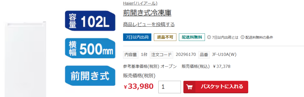 我が家の冷凍庫は ハイアール 前開き冷凍庫
